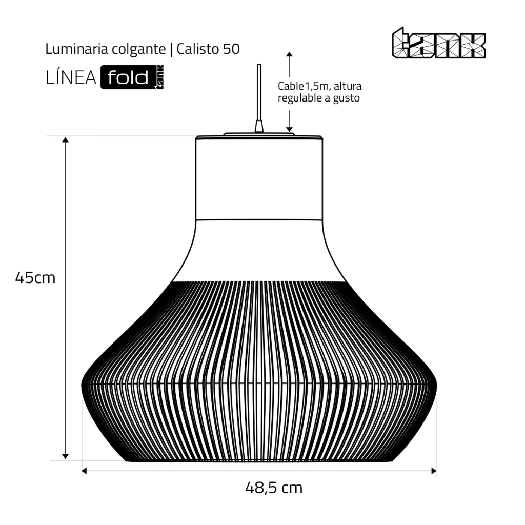 - Cable 1,5m y accesorios en blanco o negro (portalámpara, tapa de techo, prensacables).