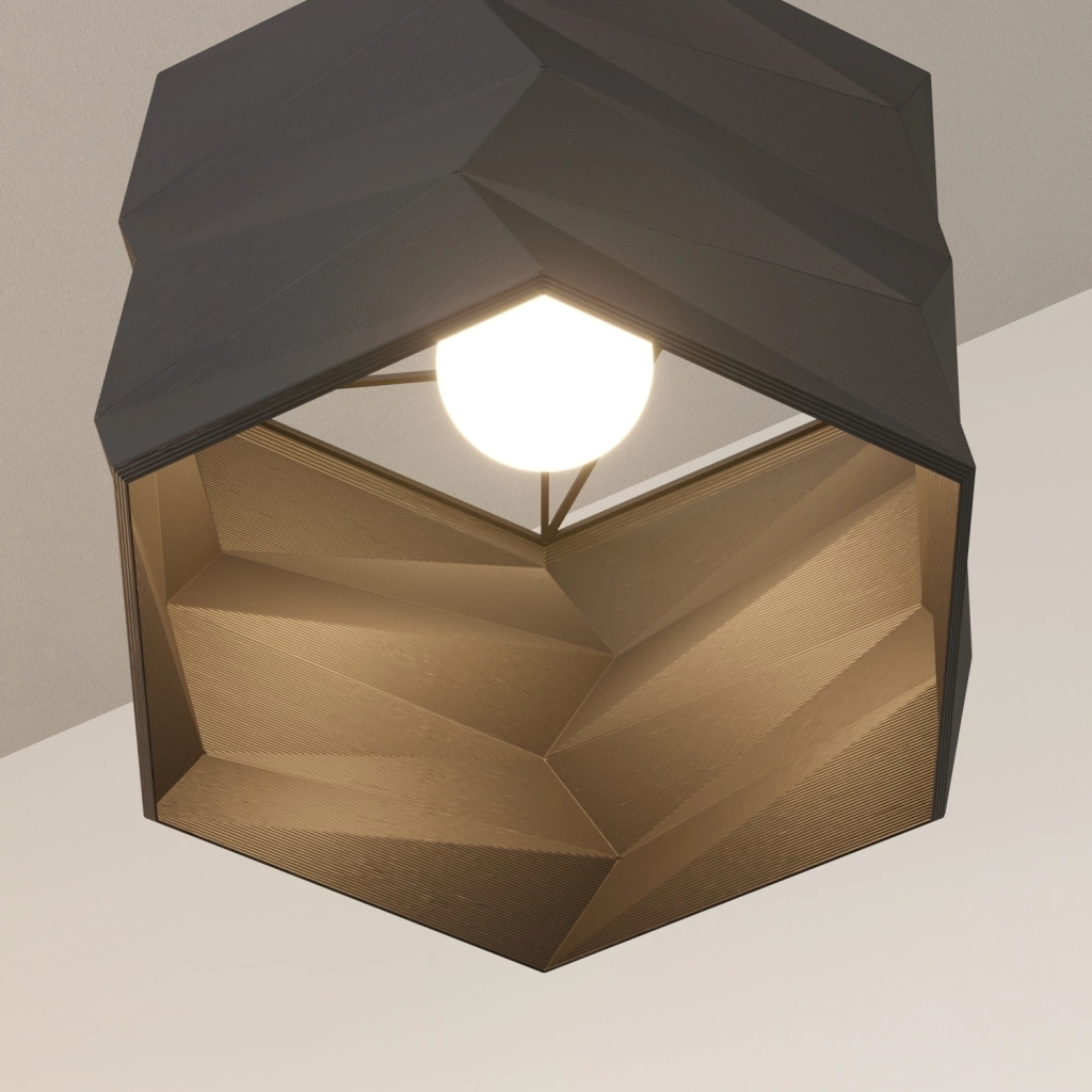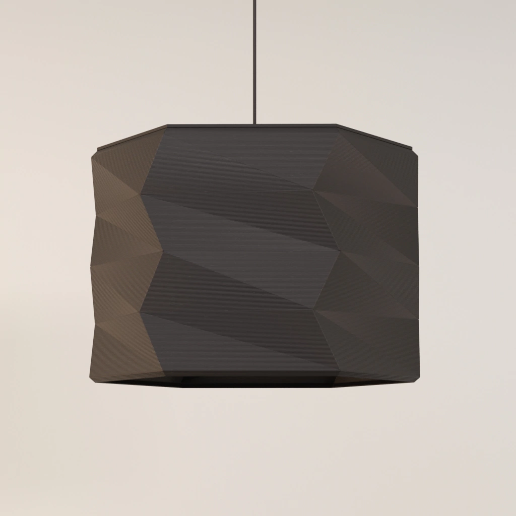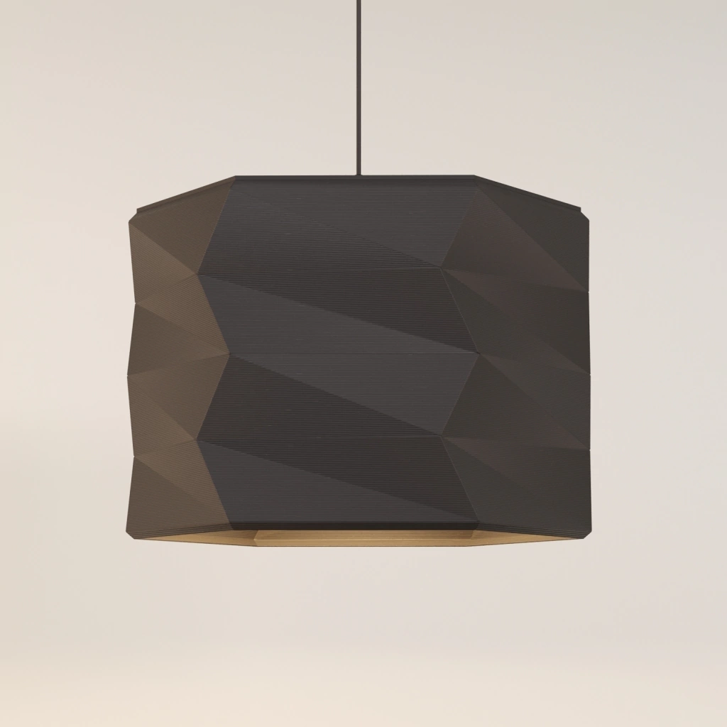 - Diseño de pantalla poligonal, fabricada en plástico de origen vegetal (PLA)