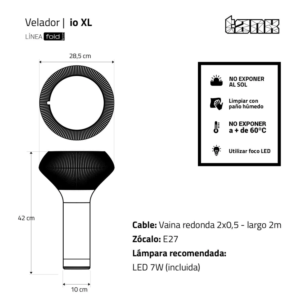 La lámpara de escritorio "io" es otra integrante de la línea Fold -2023-, fabricada en plástico de origen vegetal (PLA).